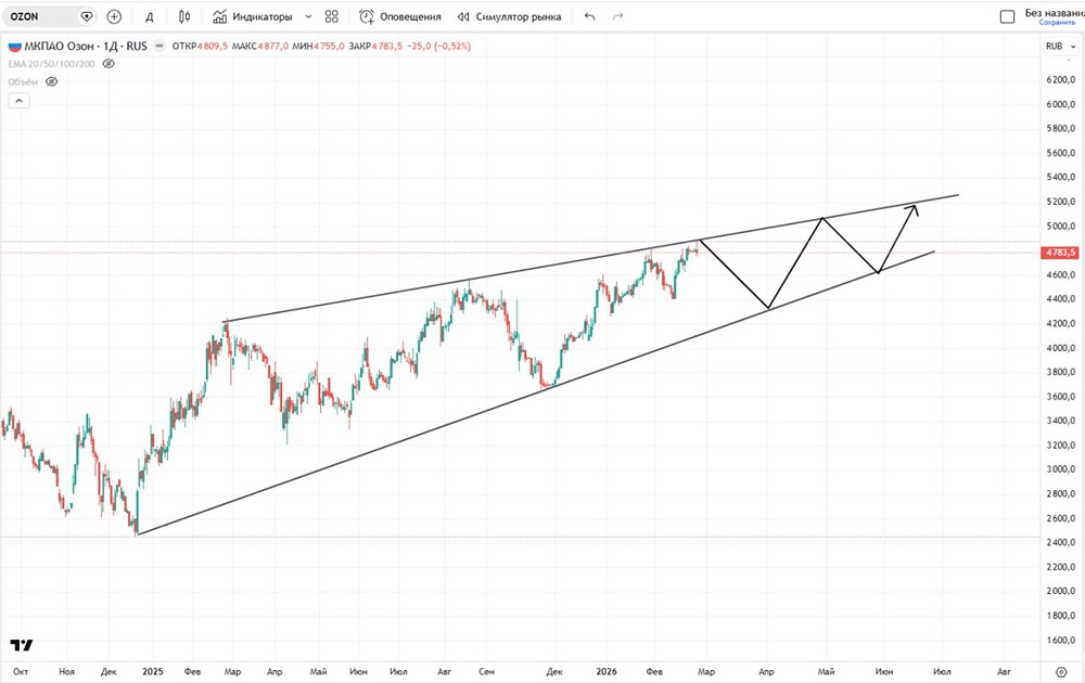 Какие перспективы видят трейдеры по акциям «Озон» на графике в среднесрочной перспективе?