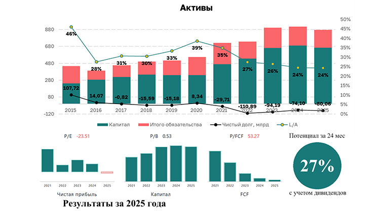 Обзор финансовых итогов Сбербанка за 2025 год по МСФО. - Чистые процентные доходы выросли на 18,5% и составили 3556 млрд руб. - Чистые комиссионные доходы снизились на 1,1% до 833,7 млрд руб. - Чистая прибыль увеличилась на 7,9% до 1705,9 млрд руб. Рост доходов: За 2025 год процентные доходы Сбербанка выросли на 18,5%, достигнув 3556 млрд рублей. Это стало возможным благодаря увеличению доходности и объема активов. Чистая процентная маржа поднялась на 0,3 процентных пункта до 6,2%. Чистая прибыль банка выросла на 7,9%, установив новый рекорд в 1705,9 млрд рублей. Чистая прибыль за последние три года: — 2023: 1508,6 млрд руб. — 2024: 1582 млрд руб. — 2025: 1705,9 млрд руб. (новый рекорд). Комиссионные доходы за год снизились на 1,1%, а в четвертом квартале 2025 года — на 5,2%, из-за единовременного признания доходов по корпоративным клиентам в прошлом году. Рентабельность капитала (ROE) составила 22,7%, что ниже прошлогоднего уровня в 24%. Операционные расходы выросли на 16,5% до 1237,4 млрд руб., а доходы — на 16,6% до 4089 млрд руб. Расходы на резервы увеличились с 413 до 610,9 млрд руб. ❗️Убытки экосистемы: По итогам 2025 года экосистема Сбербанка принесла убытки в размере 156 млрд руб., что меньше прошлогоднего показателя в 284 млрд руб. Убыточным оказался и страховой сегмент, потерявший 200 млрд руб., в то время как в 2024 году он принес 14 млрд руб. прибыли. Дивиденды: В 2025 году Сбербанк выплатил дивиденды в размере около 37,8 руб. на акцию, что соответствует доходности в 11,9% к текущей цене. Это выше уровня 2024 года (10,7%) и 2023 года (10,5%). Прогнозы на 2026 год Сбербанк подтвердил свои прогнозы по ключевым финансовым показателям на следующий год: — Рентабельность капитала: 22% — Чистая процентная маржа: около 5,9% — Стоимость риска: менее 1,4% — Чистый комиссионный доход: рост на 5-7% — Отношение расходов к доходам: 30-32% Менеджмент банка ожидает рост чистой прибыли в 2026 году, ориентируясь на показатель около 1,8 трлн руб., но не прогнозирует его превышение 2 трлн руб. в базовом сценарии. Это означает, что дивиденды за 2026 год превысят 40 руб. на акцию. Глава Сбербанка Герман Греф прогнозирует курс доллара к концу 2026 года на уровне около 95 руб., а при определенных условиях — ближе к 100 руб. Снижение курса до 80 руб. он считает маловероятным. Итоги Сбербанк вновь порадовал рынок сильным финансовым отчётом за 2025 год. Банк третий год подряд устанавливает рекорды по ключевым показателям, что отражается в рекордных дивидендах. Прогнозы на 2026 год предполагают продолжение этой успешной тенденции. На данный момент Сбер занимает третье место по доходности в индексе Мосбиржи, уступая только «Транснефти» и МТС. Акции Сбербанка остаются самыми популярными среди этой тройки, занимая лидирующую позицию в народном портфеле с долей более 30%. С начала года акции Сбербанка выросли более чем на 5%, сохраняя сдержанную динамику. Летом, когда банк выплатит крупные дивиденды, ожидается повышение ликвидности и рост акций до целевого уровня в 350 руб. Не является индивидуальной инвестиционной рекомендацией Пост взят с международного финтех-медиа ресурса [M O N D I A R A](https://mondiara.com) [Скачать](https://apps.apple.com/ru/app/m-o-n-d-i-a-r-a/id6475953453) приложение в App Store [Скачать](https://play.google.com/store/apps/details?id=com.mondiara.app) приложение в Google Play Источник: Фундаменталка