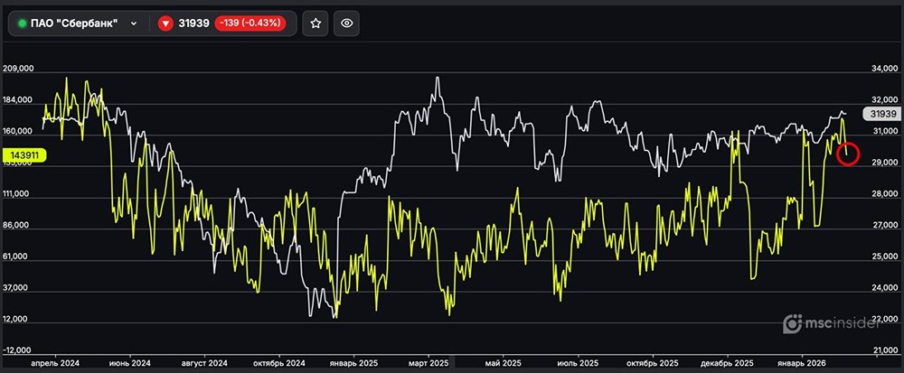 ПАО Сбербанк: физлица резко сократили чистый лонг Не является индивидуальной инвестиционной рекомендацией Пост взят с международного финтех-медиа ресурса [M O N D I A R A](https://mondiara.com) [Скачать](https://apps.apple.com/ru/app/m-o-n-d-i-a-r-a/id6475953453) приложение в App Store [Скачать](https://play.google.com/store/apps/details?id=com.mondiara.app) приложение в Google Play Источник: MSCinsider