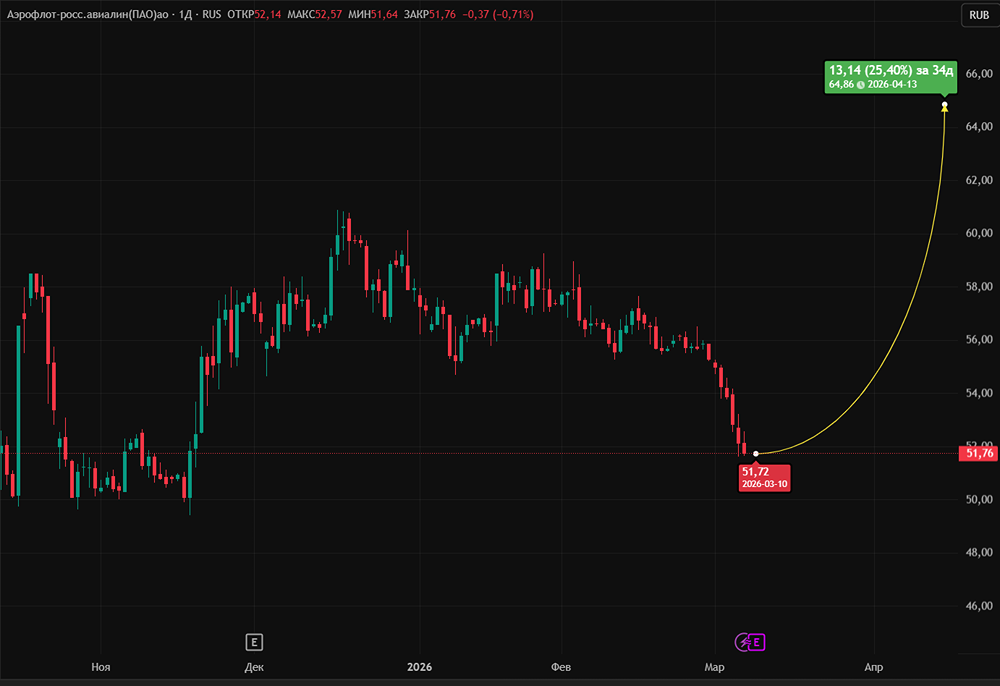 Мнение: Финам Риски «Аэрофлота» уже учтены в цене «Аэрофлот» лидирует на российском рынке авиаперевозок благодаря росту пассажирооборота, расширению маршрутов, особенно в дружественные страны, и урегулированию ряда страховых случаев, что повышает финансовую устойчивость компании. Однако возникают сложности с обслуживанием самолетов и импортозамещением. Геополитическая нестабильность также может негативно повлиять на финансовые результаты. Аналитики «Финама» рекомендуют покупать акции «Аэрофлота» с целевой ценой 64,87 руб. через 12 месяцев. Это предполагает рост на 23% от текущего уровня. Компания продолжает расширять направления и увеличивать пассажирооборот. За последний год акции упали на 32%, но мы считаем, что большая часть рисков уже учтена в их цене. «Аэрофлот» — крупнейшая российская авиационная группа, включающая «Аэрофлот», региональные авиалинии «Россия» и лоукостер «Победа». В 2024 году группа заняла первое место на российском рынке с долей 41,7%. Загрузка пассажирских кресел составила 90,2%, что на 0,6 процентного пункта выше, чем в предыдущем году. Не является индивидуальной инвестиционной рекомендацией Пост взят с международного финтех-медиа ресурса [M O N D I A R A](https://mondiara.com) ➠ [веб-приложение](https://mondiara.com) ➠ [Скачать](https://apps.apple.com/ru/app/m-o-n-d-i-a-r-a/id6475953453) на iPhone ➠ [Скачать](https://play.google.com/store/apps/details?id=com.mondiara.app) на Android Источник: t.me/finamalert