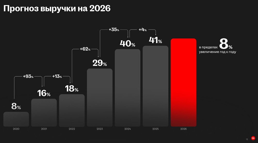 Хэдхантер: дно цикла близко Разбираем свежие отчеты HeadHunter за 2025 год. Основные показатели: - Выручка: 41,2 млрд руб. (+4,0% г/г) - EBITDA: 22,8 млрд руб. (-2,0% г/г) - Чистая прибыль: 18,0 млрд руб. (-24,7% г/г) - Рентабельность по EBITDA: 55,2% - Чистая рентабельность: 43,7% - ND/EBITDA: отрицательный Итоги года: Компания замедлила рост, что было ожидаемо. Выручка увеличилась всего на 4%, а прибыль сократилась из-за роста расходов и повышения налогов для IT-компаний. Поквартальная динамика: Рынок стабилизировался. В четвертом квартале выручка составила 10,47 млрд руб., увеличившись всего на 0,4% г/г. Это признак нижней части цикла найма. Рост основных услуг замедлился: - Размещение вакансий: +0,9% г/г - Доступ к базе резюме: -14,3% г/г - Пакетные подписки: -1,9% г/г Крупные клиенты продолжают приносить доход, но малый и средний бизнес сокращают расходы на найм. Количество платящих клиентов уменьшилось на 15%, особенно в регионах. Средний чек вырос на 12-13%, но это связано с оттоком клиентов с низким потреблением. Новые драйверы роста: - Дополнительные услуги: +23,7% г/г - HRtech: +94% г/г (6% выручки) HRtech постепенно диверсифицирует бизнес компании. Финансовая устойчивость: Рентабельность по EBITDA остается высокой (55,2%). CAPEX вырос до 1,6 млрд руб. Чистый долг отрицательный, свободный денежный поток — 20,5 млрд руб. Рекомендованы дивиденды 233 руб. на акцию. Перспективы: На рынке труда цикл обычно завершается последним. Сначала замедляются экономика и инвестиции, затем сокращаются вакансии, и только потом падает активность на платформах найма. В краткосрочной перспективе динамика будет зависеть от ситуации на рынке труда. Долгосрочно HeadHunter сохраняет сильные позиции благодаря доминирующей доле рынка и развитию HRtech. Целевая цена акций: С учетом отчетности и налогов таргет снижен до 4000 руб. на акцию на год. Не является индивидуальной инвестиционной рекомендацией Пост взят с международного финтех-медиа ресурса [M O N D I A R A](https://mondiara.com) ➠ [веб-приложение](https://mondiara.com) ➠ [Скачать](https://apps.apple.com/ru/app/m-o-n-d-i-a-r-a/id6475953453) на iPhone ➠ [Скачать](https://play.google.com/store/apps/details?id=com.mondiara.app) на Android Источник: [Investillion - про инвестиции](https://t.me/Investillion)