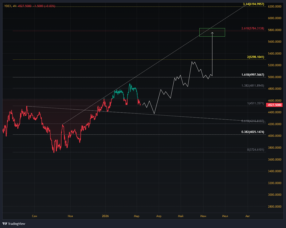 Рост, дивиденды и ставка на ИИ 17 февраля компания опубликовала отчёт по МСФО за 2025 г. Он вышел сильным, но, как это часто бывает, котировки заложили позитив в цену перед выходом отчёта, а по факту публикации началась фиксация прибыли. Впрочем, с октября прошлого года акции заметно выросли — с 3800 руб. до 4500 руб. Яндекс платит дивиденды каждые полгода. Ближайшая выплата ожидается в размере 110 руб. на акцию, дивдоходность по текущим ценам — около 2,5%. Рекомендацию совета директоров можно ожидать в апреле. Ожидаемая дивдоходность на год вперед — 4,5%. На мой взгляд, достижения Яндекса в сфере ИИ и умной роботизации в России готовы превратиться в мощный источник дохода. Масштабная монетизация этих технологий способна создать дополнительную стоимость, сопоставимую с нынешней рыночной капитализацией компании. В ближайшие годы среднегодовые темпы роста выручки и скорр. EBITDA ожидаются на уровне 21% и 30% соответственно. Сейчас бумаги Яндекса торгуются с привлекательным мультипликатором EV/EBITDA на 2026 г. на уровне 5,1х (дисконт порядка 30% к российским технологическим компаниям). Целевая цена по акциям компании на горизонте года — 5800 руб., потенциал роста от текущих составляет около 28%. Не является индивидуальной инвестиционной рекомендацией Пост взят с международного финтех-медиа ресурса [M O N D I A R A](https://mondiara.com) ➠ [веб-приложение](https://mondiara.com) ➠ [Скачать](https://apps.apple.com/ru/app/m-o-n-d-i-a-r-a/id6475953453) на iPhone ➠ [Скачать](https://play.google.com/store/apps/details?id=com.mondiara.app) на Android Источник: Investment Hub