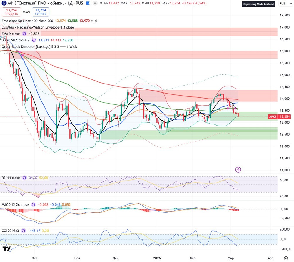 На каких уровнях на графике можно начать покупать акции АФК Система?