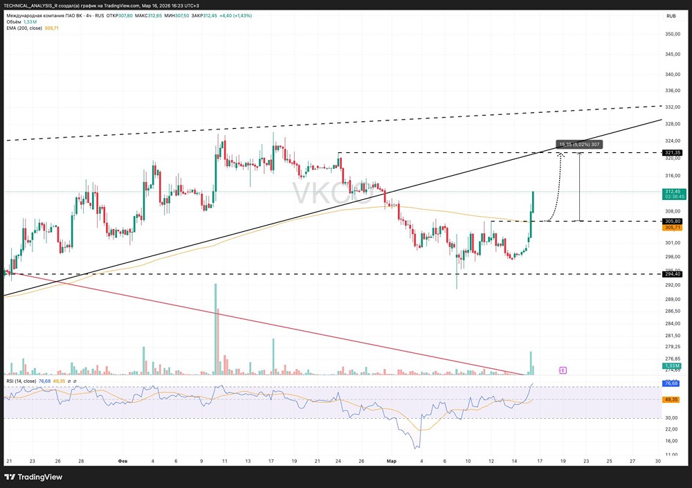 🔺 Сегодня актив показывает хороший импульс роста — я его как раз ждал. Чем ближе разговоры о возможной блокировке Telegram, тем сильнее реагирует бумага. Но заходить прямо сейчас опасно. Буду ждать тест поддержки и EMA200, которая раньше выступала сильным сопротивлением. Именно такие «снайперские» входы я и люблю. Не является индивидуальной инвестиционной рекомендацией Пост взят с международного финтех-медиа ресурса [M O N D I A R A](https://mondiara.com) ➠ [веб-приложение](https://mondiara.com) ➠ [Скачать](https://apps.apple.com/ru/app/m-o-n-d-i-a-r-a/id6475953453) на iPhone ➠ [Скачать](https://play.google.com/store/apps/details?id=com.mondiara.app) на Android Источник: Инвестиции в будущее