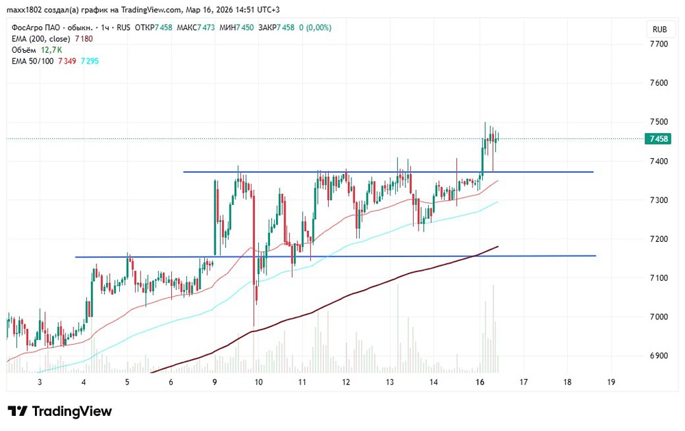 Акции ФосАгро растут: на сколько ещё +3–7 %? Разбор графика