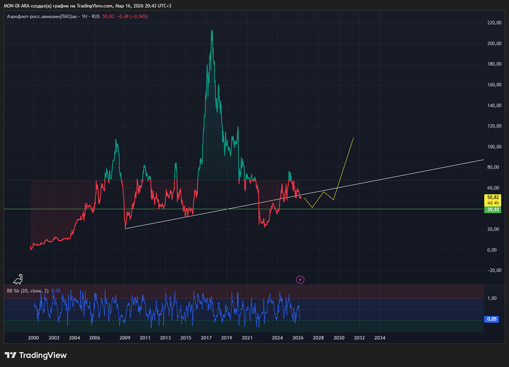🔻 Аэрофлот представил слабые результаты за 4 квартал: выручка выросла всего на 2,5% до 225,8 млрд руб., при этом пассажирооборот прибавил 6,3%. EBITDA рухнула на 60%. Компания снова генерирует убытки, а чистый долг подрос до 108,5 млрд руб. из-за кредитов на страховое урегулирование бортов. Операционные успехи разбились об укрепление рубля и слабый спрос внутри РФ. Доходная ставка по международным линиям упала на 10,5% в рублях, а внутренний рынок смог показать лишь символический рост на 1,1%. При этом самолеты забиты под завязку, а значит, экстенсивного роста ждать не стоит до появления новых российских лайнеров в 2027 году. ‼️ Итого в том, что нарисовал нам авиаперевозчик, считаю финансовым пике: 🔻 Расходы на персонал и обслуживание флота растут кратно быстрее выручки. Снижение демпферных выплат от государства только добивает операционку. 🔻 Рост долговой нагрузки при текущих ставках превращает чистую прибыль в стабильный минус. Кредиты на приземление лизинговых самолетов давят на кэшфлоу. 🔻 Загрузка кресел на максимуме. Пока не придут МС-21 и Superjet, возить больше людей физически не на чем. Любая поломка иномарки без запчастей — это прямой удар по расходам. ❗️ Итого показатели выглядят бледно: на фоне падения EBITDA мультипликатор EV/EBITDA будет только расти, а отрицательный P/E делает бумагу классической ставкой на надежду. Ослабление рубля может подтянуть доходность международки, а рост выплат по демпферу — немного сгладить углы. Однако до 2027 года «Аэрофлот» — это история про высокие капзатраты и выживание старого флота. Не вижу причин для роста лучше рынка. Не является индивидуальной инвестиционной рекомендацией Пост взят с международного финтех-медиа ресурса [M O N D I A R A](https://mondiara.com) ➠ [веб-приложение](https://mondiara.com) ➠ [Скачать](https://apps.apple.com/ru/app/m-o-n-d-i-a-r-a/id6475953453) на iPhone ➠ [Скачать](https://play.google.com/store/apps/details?id=com.mondiara.app) на Android Источник: БИРЖЕВОЙ МАКЛЕР