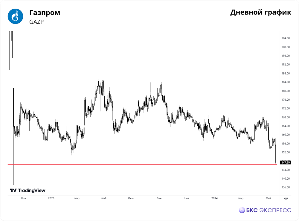 Мнение: БКС Мир Инвестиций. Акции Газпрома падают на новостях о решении правительства. Акции Газпрома на торгах понедельника ускорили снижение на вечерней сессии на новостях о подготовке директивы правительства РФ об отказе выплачивать дивиденды газовой компании за 2023 г. Об этом сообщил Интерфакс. Как отмечается, распоряжение от 18 мая 2024 года № 1183-р опубликовано на официальном портале правовой информации. Акции теряют более 5%. Котировки обновляют минимумы с октября 2022 г. Ранее Газпром сообщил, что 23 мая совет директоров проведет заседание, на котором в частности будет рассматриваться вопрос рекомендации дивидендов. Исходя из результатов компании за 2023 г. дивиденды могли составить 15-16 руб. Аналитики БКС отмечали, что шансы на выплату были, однако отсутствие дивидендов или выплата в размере 25% чистой прибыли также были вполне вероятны. [Не является индивидуальной инвестиционной рекомендацией]