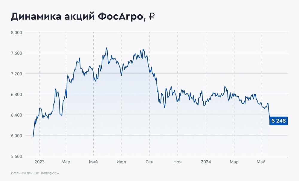 Мнение: Газпромбанк Инвестиции. ФосАгро в шорт: слабые финансовые результаты и низкая дивидендная доходность. Почему стоимость акций компании может снизиться в ближайшее время — в новой инвестидее. Причины потенциального снижения акций. Падение цен на удобрение. Цены на фосфорные удобрения, которые составляют основу прибыли ФосАгро, не растут более года, находясь на уровне конца 2022 — начала 2023 года. Аналитики сервиса Газпромбанк Инвестиции ожидают, что EBITDA ФосАгро в первом квартале 2024 года может снизиться до уровня 2021 года. Низкая дивидендная доходность. ФосАгро платит дивиденды из свободного денежного потока, который учитывает расходы на капитальные вложения. Доходы компании могут снизиться на фоне низких цен на удобрения, а расходы на капитальные вложения вырастут. Это может привести к снижению денежного потока и, как следствие, дивидендов. Ожидаемый аналитиками дивиденд за 2024 год может составить 500–600 рублей на акцию. Также аналитики не исключают отсутствия дивидендов за первый квартал, результаты которого рассмотрят 27 мая. Ранее в компании заявили, что «на фоне оттока ликвидности в четвертом квартале 2023 года и в соответствии с дивидендной политикой ПАО „ФосАгро‟ было решено не включать вопрос о распределении прибыли по результатам 2023 года в повестку дня заседания совета директоров, на котором будет рассматриваться годовая бухгалтерская отчетность компании». Инвестиционная идея. Аналитики сервиса Газпромбанк Инвестиции ожидают негативную динамику акций ФосАгро на горизонте трех месяцев. По их мнению, это дает возможность сыграть на понижение сделкой в шорт. Потенциальная доходность может составить 8% на горизонте до трех месяцев. Риски. Рост цен на газ и, как следствие, на удобрения может негативно сказаться на идее. [Не является индивидуальной инвестиционной рекомендацией]