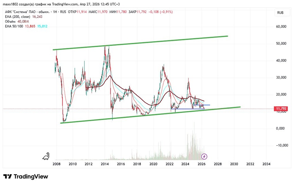 Одна из наиболее пострадавших компаний, которую стали сразу продавать после объявления ключевой ставки и пресс-конференции Набиуллиной. Да, бизнесу в России сейчас приходится нелегко, а данная компания — это владелец нескольких десятков бизнесов, и ей тяжелее остальных. Разбор графика: таймфрейм неделя С точки зрения техники, ситуация печальная, цена идёт на минимумы декабря 2024 года, а дальше должен быть отскок. Однако внизу есть также ещё один уровень поддержки, нижняя граница большого восходящего канала. Если рассматривать короткую спекуляцию, то я бы обратил внимание на уровень 11,6, от него должен последовать отскок. Если же набирать позицию в долгосрок, то можно делать это в два этапа, первая покупка по 11,6, вторая по 11. Позиция под спекуляцию обязательно со стопом, в долгосрок нужно быть готовым к тому, что какое-то время, возможно, придётся посидеть в убыточной позиции. Для компании времена сейчас непростые, что и отражено в ценах на акции, но как только ситуация изменится, цена резко развернётся наверх, и тут каждый решает сам, готов он терпеть или нет. Данный материал носит информационный характер и [не является индивидуальной инвестиционной рекомендацией](https://mondiara.com/communities?open=community-1163) или предложением о покупке или продаже указанной ценной бумаги. Источник: Инвестируем Выгодно