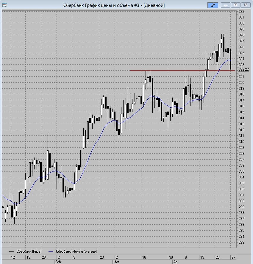 Акции Сбера пробивает линию дневной скользящей МА-13