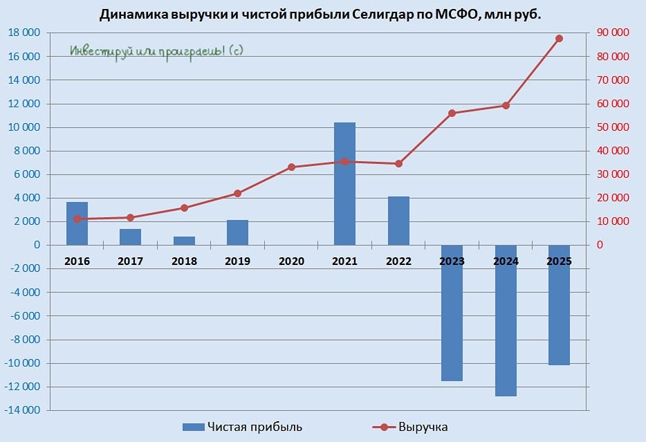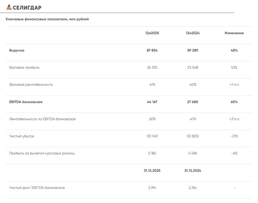 Мировые центральные банки продолжают наращивают свои золотые резервы, причём самыми быстрыми темпами более чем за год — к такому выводу пришёл Всемирный золотой совет. И в этом контексте интересно рассмотреть перспективы золотодобытчика «Селигдар» (#SELG), опираясь на финансовую отчётность компании по МСФО за 2025 год, которая была опубликована накануне. Выручка компании выросла в минувшем году на +48% до 87,9 млрд руб. Причина такой динамики не только в благоприятной ценовой конъюнктуре, но и в производственных успехах. Ранее мы уже анализировали операционные результаты: компания [увеличила](https://t.me/invest_or_lost/7761) выпуск золота на +9,5%, а олова — сразу на +42%. Рост выручки, в сочетании с эффективным управлением затратами, позволил в итоге «Селигдару» нарастить показатель EBITDA сразу на +60% до 44,2 млрд руб. На этом фоне рентабельность по EBITDA составила 50%, достигнув 4-летнего максимума. А вот долговая нагрузка по соотношению Net Debt/EBITDA выросла до 3,2х, что выше комфортного уровня, однако это было совершенно ожидаемо, и на протяжении всего прошлого года я об этом писал и объяснял почему. Дело в том, что в первый год сильного роста цен на золото долговая нагрузка эмитента растёт, т.к. существенная часть долга приходится на кредит, обеспеченный драгметаллом (около 2/3 долговых обязательств компании номинированы в драгметаллах: золото и серебро). Затем показатель снижается, за счёт опережающего темпа роста операционных доходов, что со временем конвертируется в улучшение кредитоспособности компании. «Мы отчетливо понимаем, что завершающийся инвестиционный цикл позволит совершить качественный рывок в развитии «Селигдара», как это было ранее, почти 10 лет назад, когда мы запускали нашу первую фабрику на производственном комплексе «Рябиновый», - отметил президент «Селигдара», председатель Совета директоров Александр Хрущ. Действительно, «Селигдар» постепенно реализует свои проекты: ➥ В 2026 году должна полноценно заработать ЗИФ на месторождении «Хвойное», что позволит увеличить объем получаемого золота и улучшить денежный поток. Сейчас цены на драгметалл находятся на исторически высоких уровнях. По оценкам Всемирного золотого совета, в 1 кв. 2026 года мировой спрос на золото вырос ещё на +2% (г/г) до 1231 тонны, на фоне активных покупок драгметалла со стороны мировых Центробанков, которые диверсифицируют свои резервы на фоне геополитической напряжённости на Ближнем Востоке. ➥ Параллельно «Селигдар» готовится к «Кючусу», который имеет ресурсную базу около 175 т золота, и на котором с 2030 года планируют добывать по 10 т драгметалла ежегодно. На участке начали инженерные изыскания, а также ждут экспертизу с ГКЗ по ТЭО постоянных кондиций. Стратегия покупки бумаг «Селигдара» при ценнике ниже 40 руб. уже не раз доказывала свою эффективность, и эта тактика по-прежнему работает! Компания наращивает производство золота и олова, что на фоне высоких цен на металлы формирует фундамент для роста капитализации. Поэтому следите за котировками и при коррекции в район 40+ руб. смело нажимайте кнопку BUY в своём торговом терминале! Данный материал носит информационный характер и [не является индивидуальной инвестиционной рекомендацией](https://mondiara.com/communities?open=community-1163) или предложением о покупке или продаже указанной ценной бумаги.