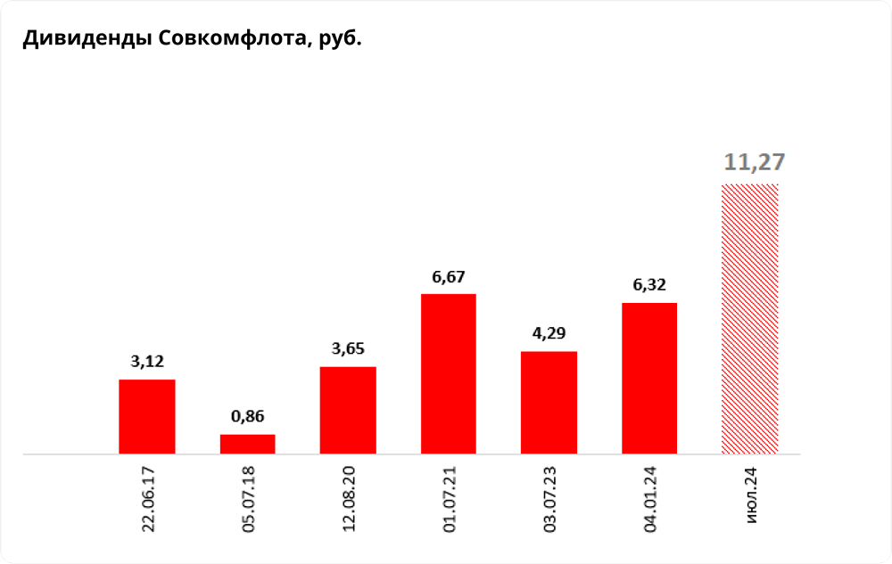 Мнение: Альфа-банк. Совкомфлот объявил финальные дивиденды за 2023 год. Компания опубликовала рекомендации по размеру дивидендных выплат. Совет директоров Совкомфлота дал рекомендации по дивидендам за 2023 год. - Выплаты составят 11,27 руб. на акцию. - Доходность: 8,5%. - Последний день для покупки акций для получения дивидендов - 18 июля 2024 года (с учётом режима торгов Т+1). - Общий объём выплат составит 26,76 млрд руб. - Итоговое решение по дивидендам и дате отсечки акционеры примут на годовом общем собрании 30 июня 2024 года. Мнение аналитиков Альфа-Инвестиций. Компания придерживается политики распределения на дивиденды 50% скорректированной чистой прибыли. Размер дивидендов близок к ожиданиям инвесторов. По итогам 9 месяцев 2023 года эмитент уже распределил среди акционеров по 6,32 руб. на акцию. Как сообщал ранее менеджмент, общие выплаты за весь год могли быть близки к 18 руб. В итоге именно так и получилось. Новость о выплатах может оказать локальную поддержку бумагам. При этом в среднесрочной перспективе ожидания по акциям пока преимущественно нейтральные. Важное про Совкомфлот: - Крупнейшая судоходная компания России, один из мировых лидеров в области морской транспортировки сжиженного газа и сырой нефти. - Услуги компании по транспортировке нефти пользуются большим спросом в последние годы - за счёт этого значительно увеличилась прибыль. Совкомфлот остаётся ключевым участником поставок российской нефти на Восток. - 2023 год был успешным с финансовой точки зрения, что позитивно для дивидендных выплат. В 2024 году также ожидается стабильный результат. - Ключевые драйверы для акций Совкомфлота - спрос на российскую нефть и ставки фрахта. - Акции Совкомфлота с осени 2022 года выросли в три раза. В 2024 году они показывают смешанную динамику и выглядят хуже Индекса МосБиржи. - Таргет аналитиков Альфа-Банка на 12 месяцев - 145 руб. (+10%). [Не является индивидуальной инвестиционной рекомендацией]