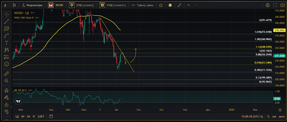 Акция: ВУШ Тикер: WUSH Возможный сценарий на графике. Автор: MONDIARA_Trading [Не является индивидуальной инвестиционной рекомендацией]