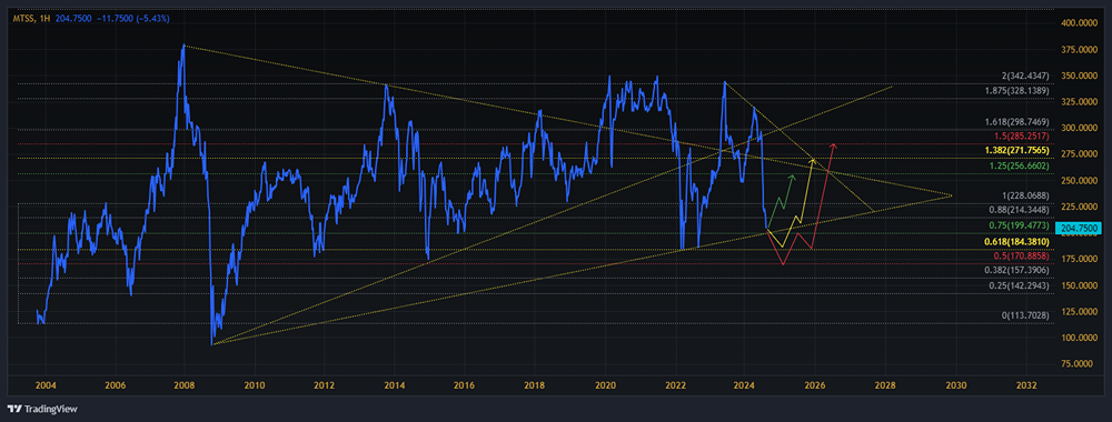 Акция: МТС Тикер: MTSS ТФ: 1Н [неделя] Среднесрочный технический расчёт. Если считаешь, что победят лонгисты - ставь быка под постом, если шортисты - ставь медведя. Автор: MONDIARA_Trading [Не является индивидуальной инвестиционной рекомендацией]