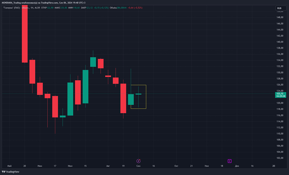 ТФ: 1Н [неделя] Неделя закрывается паттерном "додж". Данный паттерн может говорить только о том, что рынок не определён в какую сторону двигаться. В текущей формации есть 2 вывода: 1. Сил на падения нет. 2. Сил для роста пока не скопилось. Основной триггер на ростовую модель может сформироваться при проходе 136 руб. за акцию. В следующем посте разберём на каких уровня по Фибо находится актив по окончанию текущей недели исходя от всей волновой структуры. [Не является индивидуальной инвестиционной рекомендацией]