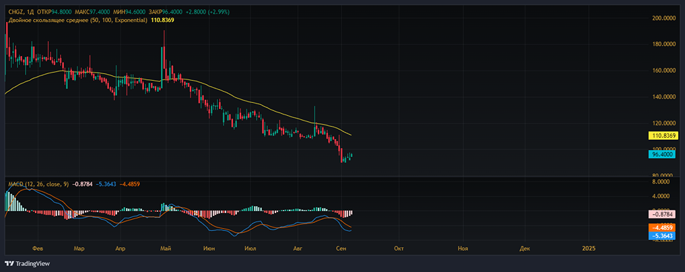 ТФ: 1Д [день] Акция торгуется под 50-ти дневной экспоненциальной средней, касание с которой в будущем окажется первой сильной зоной сопротивления. [Не является индивидуальной инвестиционной рекомендацией]