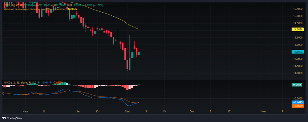 ТФ: 1Д [день] Акция торгуется под 50-ти дневной экспоненциальной средней, касание с которой в будущем окажется первой сильной зоной сопротивления. [Не является индивидуальной инвестиционной рекомендацией]