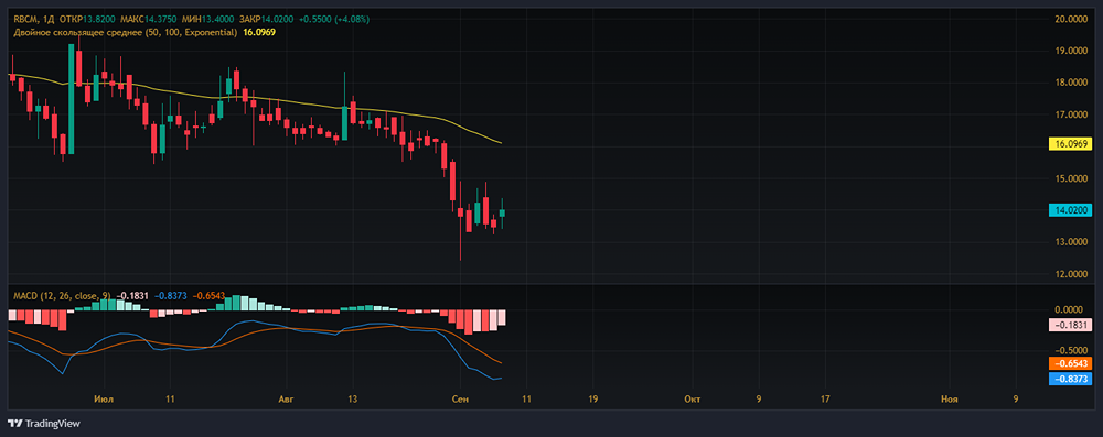 ТФ: 1Д [день] Акция торгуется под 50-ти дневной экспоненциальной средней, касание с которой в будущем окажется первой сильной зоной сопротивления. [Не является индивидуальной инвестиционной рекомендацией]