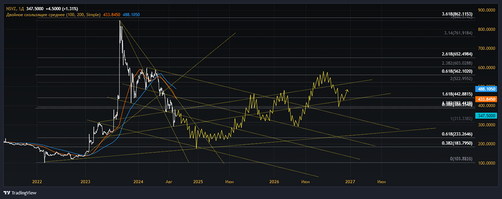 ТФ: 1Д [день] Среднесрочный технический взгляд на котировки исходя из числовой последовательности Фибоначчи. [Не является индивидуальной инвестиционной рекомендацией]