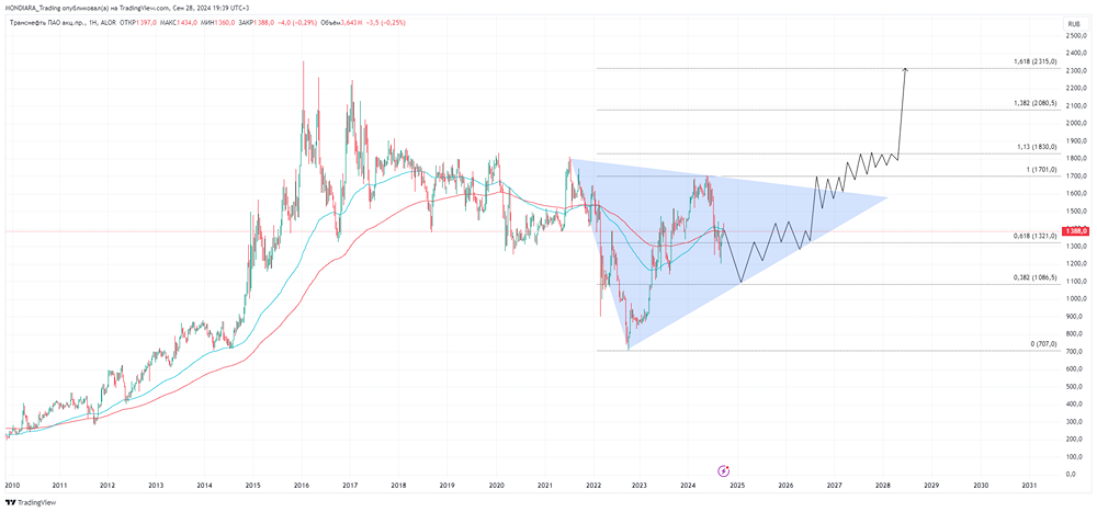 Не нужно пугаться снижения. Уже долгое время цена на актив находится в рамках глобального нисходящего канала. Можно взглянуть на более широкий график. Основная цель — достичь уровня в 1000 рублей, и только после этого можно будет говорить о полноценной долгосрочной игре с целью в 2300 рублей за акцию. Обратите внимание, что данный материал не является индивидуальной инвестиционной рекомендацией.