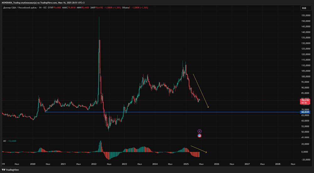 Юань - Рубль Юань - на текущий момент уже которую неделю нет ни одной причины для покупки. Тренд падающий, падение может ускорится Данный материал носит информационный характер и не является индивидуальной инвестиционной рекомендацией или предложением о покупке или продаже указанной ценной бумаги. Источник: https://t.me/profitking