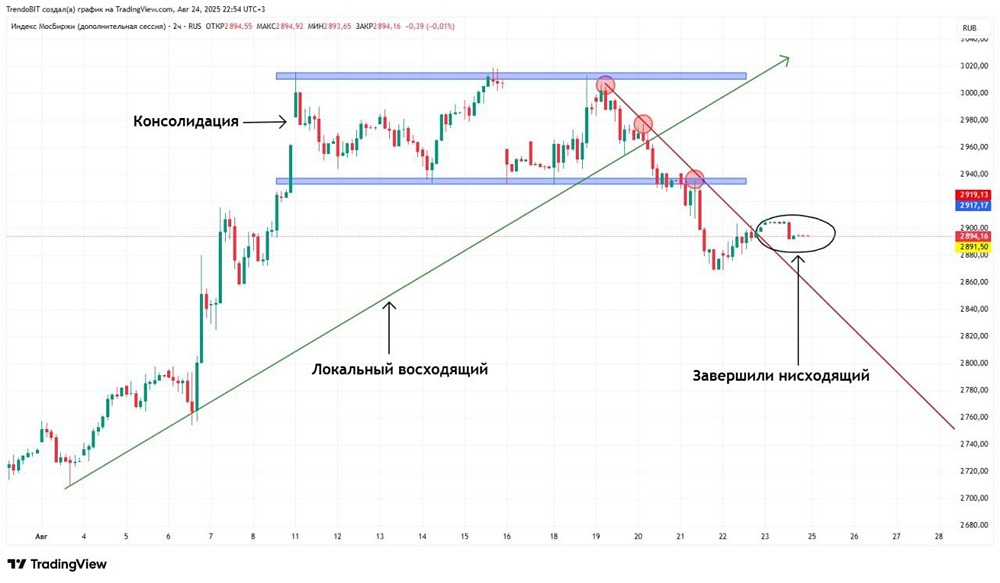 Что ждать на текущей неделе? На этой неделе мы обсудим техническую картину рынка, важные новости, вышедшие за выходные, и их влияние на российский рынок. Также рассмотрим, на чьей стороне находятся «умные деньги». 🔹 Техническая картина Среднесрочный тренд пока не сформировался, но есть вероятность, что это произойдёт. Консолидация в рамках паттерна «флаг» сохраняется, цель — 3050 пунктов. Ждём третье касание, чтобы подтвердить наклонную линию. Локально рынок находится в коррекционном движении после вертикального роста. Пробили локальную нисходящую наклонную линию, есть закрепление. Ждём выхода из накопления, которое пока продолжается. 🔹 Индикаторы → Стохастик вошёл в зону перепроданности, но закругления пока нет. Ждём завершения формации и попытки выхода в обратном направлении. → RSI находится на средних значениях, перекупленность снята, наблюдается локальная консолидация. → Скользящие средние (ЕМА 50, 100 и 200) защищают диапазон ЕМА 200. Цена находится выше этих уровней. 🔹 «Умные деньги» После экспирации опционов юридические лица по-прежнему настроены на снижение рынка. Дисбаланс не изменился, общая картина остаётся прежней. Умные деньги продолжают ставить на продолжение снижения. 🔹 Геополитика: новости выходных → Путин в телефонном разговоре с Трампом заявил, что Россия готова продолжить прямые переговоры с Киевом, начавшиеся в Стамбуле. → США не исключили возможность введения санкций против России в будущем, но решения будут приниматься индивидуально. → Россия примет участие в обсуждении гарантий безопасности. → На следующей неделе Путин посетит Китай с четырёхдневным визитом. 🔹 Вывод Техническая картина остаётся позитивной, но индикаторы не показали явного разворота. Возможны попытки снижения, за которыми может последовать локальный разворот. Выходные прошли без значительных объёмов и ликвидности, торговля была волатильной. Если не пробьём предыдущий минимум, возможны попытки разворота. Короткие позиции в данном случае не рекомендуются. При пробое предыдущего минимума сценарий изменится. Новостной фон продолжит влиять на движение рынка. Не пытайтесь искать логику в отдельных событиях, важна общая картина. ❗️ Мнение Держим только длинные позиции (Long). Ждём новых заявлений о переговорном процессе. Новые позиции пока не открываем. Данный материал носит информационный характер и не является индивидуальной инвестиционной рекомендацией или предложением о покупке или продаже указанной ценной бумаги. Больше новостей и анализа находятся в нашем мобильном приложение [m o n d i a r a](https://i.mondiara.com/) Скачать в [App Store](https://apps.apple.com/ru/app/m-o-n-d-i-a-r-a/id6475953453) Скачать в [Google Play](https://play.google.com/store/apps/details?id=com.mondiara.app) Источник: Trendoman "Торговые сигналы"
