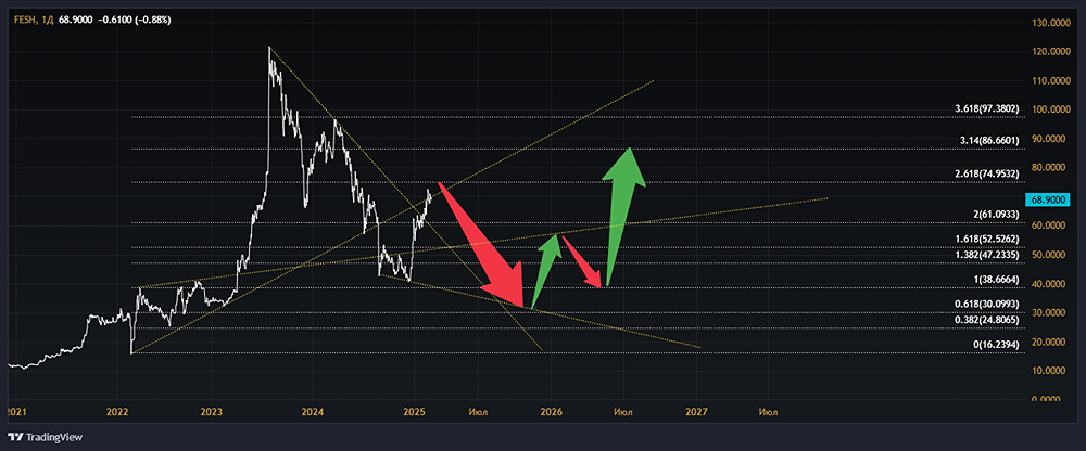 ФАРМСИНТЕЗ Технический анализ акций на среднесрочную перспективу. Временной период: 1 день. Для прогнозирования будущей стоимости активов используется метод, основанный на числовой последовательности Фибоначчи и учитывающий динамику цен. Дополнительные расчёты можно найти по ссылке на наш канал в социальной сети M O N D I A R A: https://i.mondiara.com/i/c/mondiara_trading. Данный материал носит исключительно информационный характер и не может рассматриваться как индивидуальная инвестиционная рекомендация или предложение о покупке или продаже конкретной ценной бумаги.