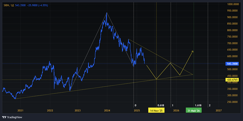 ГАЗПРОМ НЕФТЬ Для расчёта будущей стоимости активов применяется алгоритмический подход, который учитывает поведение цены, основываясь на числовой последовательности Фибоначчи. Данный материал носит информационный характер и не является индивидуальной инвестиционной рекомендацией или предложением о покупке или продаже указанной ценной бумаги.