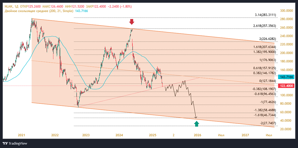 НЛМК ТФ: 1Д [день] Для расчёта будущей стоимости активов применяется алгоритмический подход, который учитывает поведение цены, основываясь на числовой последовательности Фибоначчи. Данный материал носит информационный характер и не является индивидуальной инвестиционной рекомендацией или предложением о покупке или продаже указанной ценной бумаги.