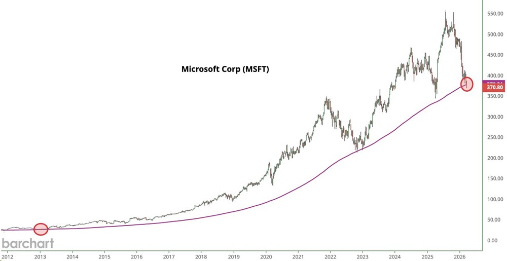 ❗️ Акции Microsoft тестируют 200-дневку — знаменательное событие после затяжного падения, отмечают ТА-аналитики.