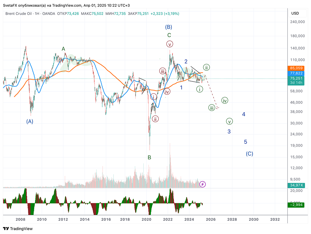 Мнение: Финам Есть вероятность, что рынок нефти завершит текущую неделю с положительной динамикой. Цена на нефть на вчерашней торговой сессии снизилась на 3,5%. Таким образом рост, который мы наблюдали в среду 09.04 был частично нивелирован. В настоящее время нефть торгуется в зеленой зоне и находится на отметке $64,4/б. По итогам же последних пяти дней торгов у рынка есть шансы закрыть текущую неделю в плюсе. Вчера главной новостью, по нашему мнению, стал отчет от Управления энергетической информации Минэнерго США. Технически в настоящее время началась консолидация цены в диапазоне $62,7 – 65,3/б – это видно на более низком 4-х часовом ТФ. Мы полагаем, что шансы для продвижения наверх всё ещё сохраняются, а это означает, что, как мы и написали вчера, целью может стать уровень $67,3/б. Источник: finam.ru Автор: Дудченко Николай Не является индивидуальной инвестиционной рекомендацией. В этом сообщении представлено мнение экспертов инвестиционной компании или банка. Оно предоставляется исключительно для ознакомления и не является рекомендацией для покупки или продажи ценных бумаг, а также для принятия каких-либо коммерческих или других решений. mondiara.com не несёт ответственности за содержание этого сообщения и последствия его использования.