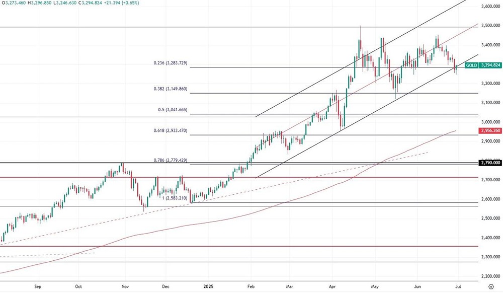 Коррекция цены золота в начале недели: прогноз движения к $3350 за унцию