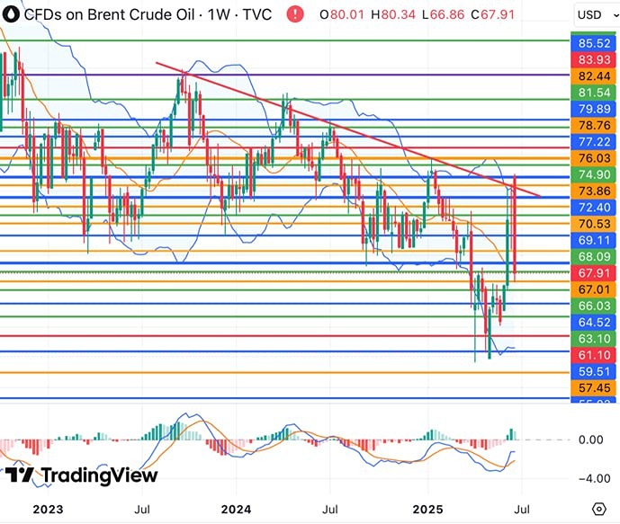 Мнение: Велес Капитал Прогноз цен на нефть Brent: возможное снижение и влияние на инвестиции В июне стоимость нефти марки Brent снова не смогла закрепиться выше уровня 80 долларов, что стало сигналом о возможном снижении цен в ближайшее время. Это может стать причиной для пересмотра стратегии и отказа от долгосрочных инвестиций. В краткосрочной перспективе цены на нефть будут зависеть от того, удастся ли им удержаться выше уровня 68 долларов. Если цены стабилизируются ниже этого уровня, это может привести к снижению до годовых минимумов и падению ниже 60 долларов. Однако это возможно только в случае ухудшения фундаментальных показателей. Источник: t.me/velescapital Автор: Екатерина Кожухова В этом сообщении представлено мнение экспертов инвестиционной компании или банка. Оно предоставляется исключительно для ознакомления и не является рекомендацией для покупки или продажи ценных бумаг, а также для принятия каких-либо коммерческих или других решений. Mondiara.com не несёт ответственности за содержание этого сообщения и последствия его использования.