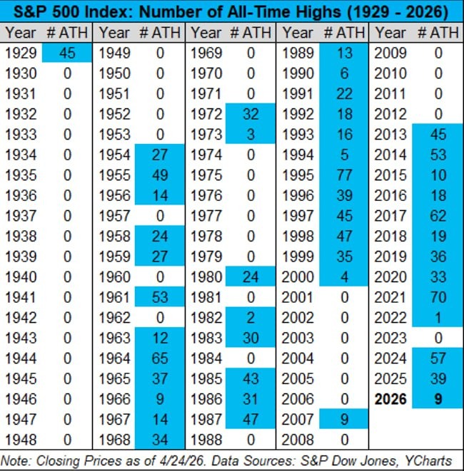Пик года, возможно, ещё очень далёк. Когда индекс S&P 500 в апреле достигает трёх или более новых максимумов, с 1986 года он никогда не достигал пика ...