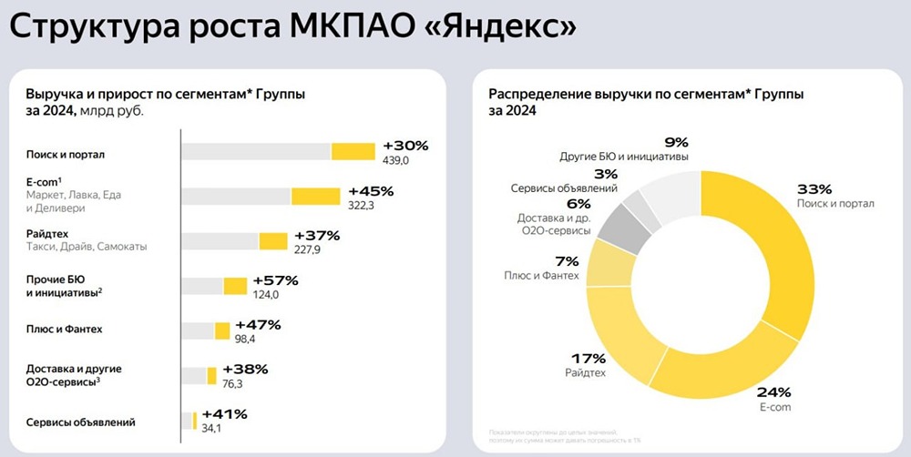 🔍 Алиса, как там отчитался Яндекс? МКПАО Яндекс по результатам за 2024 год и по прогнозам на 2025й превзошел мои ожидания. Включить утреннее шоу? 📱 По итогам года Яндекс: ☑️ Нарастил выручку на 37% до 1094.6 млрд рублей – в рамках ожиданий. 🔥 Скорректированная Ебитда составила 188,6 млрд против ожиданий 170-175 млрд. 🟢 Чистая прибыль снизилась на 79%, но только из-за расходов по вознаграждениям на основе акций из-за их роста. Такой разовый бумажный расход – идет переоценка будущих вознаграждений. Без него скорректированная прибыль составила 100.9 млрд, что на 94% выше г/г. 🟣 Чистый долг слегка снизился, хоть в номинале займы значительно выросли. Netdebt/Ebitda составил 0,26х. 🟢 Деньги у компании есть. Свободный денежный поток составил 78.6 млрд, что в 2.6 раза выше прошлогоднего. 👛 Компания решила выплатить 80 рулей/акция дивидендами. Вместе с сентябрьскими это будет 160 рублей или 3.4% дивдоходности в год. На самом деле сумма не малая – пэйаут около 60% скорр ЧП. 📊 Сейчас компания торгуется по мультипликаторам Р/Е = 17,6, Р/S = 1.6, Ev/Ebitda 9,7. На будущий год Яндекс хочет: 🔼 Нарастить выручку на 30%, что составит 1420 млрд. 🔼 Довести скорр. Ебитда до 250 млрд, что означает рост на 32% 🤝 Это приводит к мультипликаторам Р/S = 1.25, Ev/Ebitda 7,3. По моим оценкам Р/Е составит около 13,5х. Отчет оцениваю очень позитивно. С учетом новых данных повышаю цель с 5600 до 6400 руб на следующий год. ——— Пользуетесь сервисами Яндекса? Ставь ❤️ #YDEX