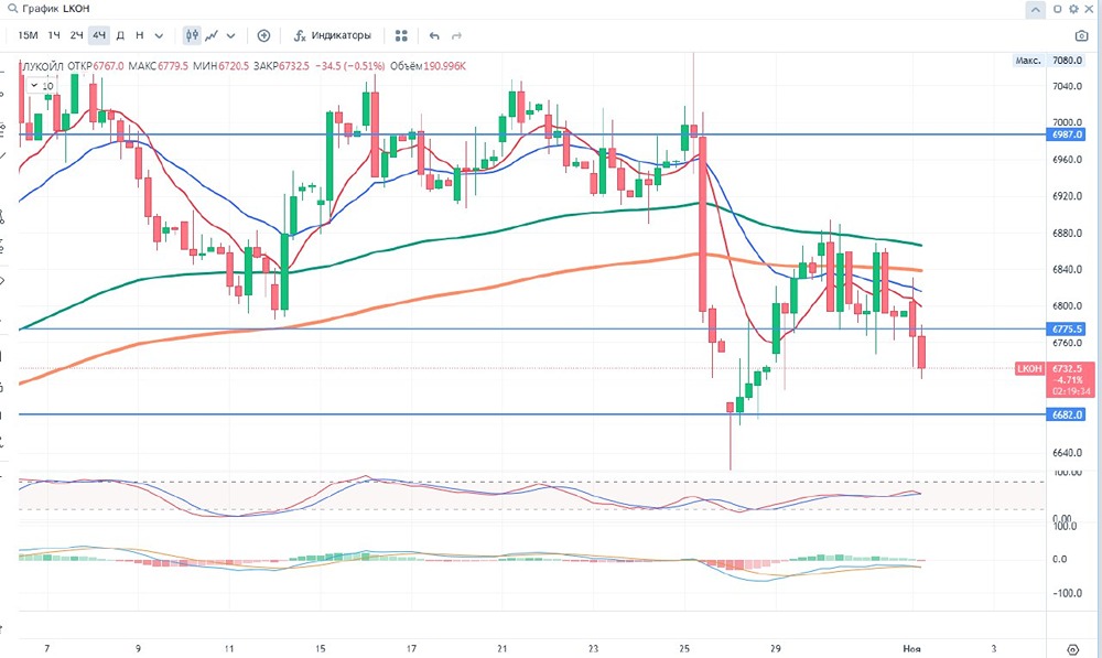 Добрый день уважаемые дамы и господа, инвесторы и трейдеры! 🚨ПАО «Лукойл» — одна из крупнейших публичных вертикально интегрированных нефтегазовых компаний в мире, на долю которой приходится около 2% мировой добычи нефти и около 1% доказанных запасов углеводородов. Ежедневно продукцию Компании, энергию и тепло покупают миллионы людей более чем в 100 странах мира, улучшая качество своей жизни. Более 100 тысяч человек объединяют свои усилия и таланты, чтобы обеспечить эффективное развитие Компании и ее передовые позиции на рынке. ✅Позитив: 📍1. Ожидаемые высокие дивиденды компании 📍2. Утверждение нулевой ставки НДПИ для газа в Арктике и продление льготы для месторождения Филановского может положительно повлиять на финансовое состояние 📍3. Возобновление поставок нефти ЛУКОЙЛом в Венгрию и обеспечение бесперебойных поставок через трубопровод "Дружба" может нести положительный эффект 📍4. Низкая долговая нагрузка 📍5. Платит дивиденды ⛔Негатив: 📍1. Геополитические риски 📍2. Ожидаемый рост выручки медленнее рынка 📢Дополнительно: 🥇1. Замглавы Минфина Алексей Моисеев заявил, что «Лукойл» пока не планирует выкупать свои акции у нерезидентов. 🥈2. Чистая прибыль «Лукойла» по МСФО за 6 месяцев 2024 года составила ₽591,54 млрд, увеличившись на 4,6% по сравнению с ₽565,44 млрд в предыдущем году. 🥉3. Выручка выросла на 19,9% до ₽4,33 трлн против ₽3,61 трлн годом ранее. 💵Дивиденды: Дивидендная политика ЛУКойла (утв. октябрь 2019 г.) основана на следующих принципах: выплаты производятся дважды в год, на дивиденды направляется не менее 100% свободного денежного потока, скорректированного на уплаченные проценты, погашение обязательств по аренде и расходы на выкуп акций. Сумма промежуточных дивидендов рассчитывается на основании отчетности по МСФО за 6 месяцев. 💴 - $LKOH : ФА Капитализация - 4708.0 млрд ₽ Кол-во акций ао– 692.9 млн Кол-во акций ап– 0.0 млн Р/Е - 4.0 P/S - 0.55 P/B - 0.7 ROE - 18.2% EV/EBITDA - 2.0 ⏰ - ТФ 1 DAY 🛠 ТА - скользящие, стохастик, объем, МАСD, уровни. 📈- тренд вниз ‼- Гистограмма MACD в отрицательных значениях, линии MACD находятся в положительных значениях, но снижаются. Стохастик находится выше средней линии , но снижается . Пока цена прыгает в районе 100 ЕМА и торгуется в диапазоне 6730-7055. При закрытии дня выше 6669,8 возможен разворот в лонг. ⏰ -ТФ 4 часа 🛠 ТА - скользящие, стохастик, объем, МАСD, уровни. 📈- тренд вниз ‼ - Гистограмма MACD в положительных значениях, линии MACD находятся в отрицательных значениях. Стохастик находится выше средней линии и пытается показать рост. При закрытии выше 6815,7 возможен разворот в лонг. Для продолжения роста не плохо бы закрепиться выше 6840, а вот снижение ниже 6682 не желательно. За 6 (05.24-10.24) месяцев цена снизилась более чем на 16 % . Мин. Рrice = 6040,5 Мах. Рrice = 8125,0 📌 Цены смены тренда указаны в соответствии с ТФ и являются ориентировочными и со временем смещаются.📌 🃏Всем профита и до скорой встречи!🃏