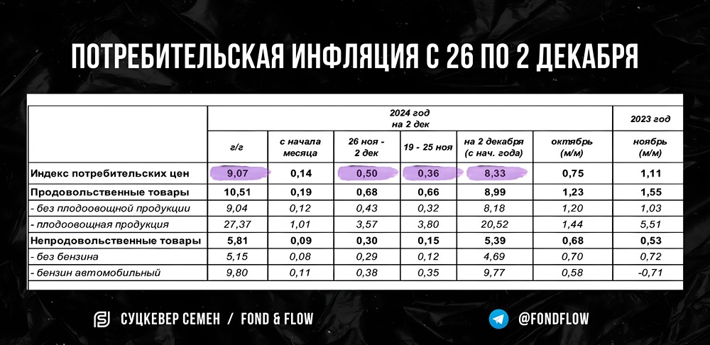 🏔️ ИНФЛЯЦИЯ: зарплаты вверх, цены ещё выше, и почему же народ недоволен? Зажрался наверное.. Ну что, как вам первая неделя зимы? Мне не нравится. Помимо очередного антирекорда по инфляции, добавились новые геополитические риски.. Но не об этом. Ещё одна неделя, ещё один виток экономических изменений. Инфляция в декабре, конечно, снова растёт, а разговоры про 23% уже в порядке вещей, обсуждают в Госдуме. Что нового? 🔹 Недельная инфляция: составила 0,5%, что выше показателей прошлых двух недель (0,37% и 0,36%). Рекордная скорость роста для осени за последние 10 лет! Но у нас по-прежнему всё идёт по плану) 🔹 Годовая инфляция: уже превышает психологическую отметку: 9,07% (на прошлой неделе было 8,78%). И это при том, что целевой диапазон ЦБ на этот год 8–8,5%,. С такими темпами мы легко «вылетим» за рамки. 🔹 Продовольственные товары: лидеры повышения. Рост составил 0,68%, из которых плодоовощная продукция выросла на 3,57%. В общем и целом, овощи продолжают «удивлять» ценниками на полках. На праздничном столе на один салат стало меньше( 💼 Зарплаты: больше денег — больше проблем? Вот это дожили.. Казалось бы, хорошие новости: зарплаты россиян за январь–сентябрь выросли на 13% и достигли 83,2 тыс. рублей в месяц. И да, привет всем курьерам, которые получают больше, чем нефтяные вахтовики) Почему же это не совсем хорошо❓ Во-первых, рост доходов сильно подогревает потребительский спрос. Люди любят у нас хорошо тратить, а с новыми зарплатами — ещё сильнее. А компании просто не успевают удовлетворить спрос. Отечественная продукция сами понимаете, а дальше там всеми известная цепочка: импорт - логистика - доллар. По итогу? Поднимаем цены. Во-вторых, рынок труда испытывает дефицит. Работодатели вынуждены конкурировать за кадры, предлагая всё более высокую оплату. Сюда добавляется новая миграционная политика и перекос в распределении зарплат между теми, кто действительно заслуживает получать, и теми, кто получает. По итогу? Эти затраты, конечно, переносятся на стоимость товаров и услуг. 🩸 Ставка на ставку или зачем бороться с инфляцией, если её можно подождать? По своей сути, повышение ключевой ставки до 21% должно было охладить потребительский спрос, тем самым вызвав снижение инфляции до нового года. Что пошло не так? ⚠️ Ставка снова не работает. Почему? Потому что рост цен вызван не потребительскими кредитами, а структурными проблемами: слабый рубль, дорогой импорт и перегретый рынок труда. Вопросы, конечно, не к ЦБ, но в моменте переоценили силы даже такой КС. ⚠️ Экономика страдает больше, чем инфляция. Малый и средний бизнес, лишённый дешёвого кредитования, урезает инвестиции и сокращает расходы. Те, кто не получает субсидий или не работает с ВПК, вынуждены сокращать инвестиции и бизнес-планы. ⚠️ Нет комплексного подхода. Одна ставка ничего не решит. Нужны меры, которые включают контроль за ключевыми ценами, повышение производительности труда, а главное — уменьшение зависимости от импорта, которое только разгоняет цены. 🤔 Мне иногда даже обидно за Набиуллину и ЦБ. Почему-то все решили, что проблемы "военной экономики" и геополитического давления может решить только они, у которых из инструментов кнопочка "повысить/понизить".. В итоге, жду ли я 23% в конце месяца? Думаю, это вполне вероятно. Как считаете, поможет ли недавнее снижение доллара замедлить инфляцию? Интересуетесь ф