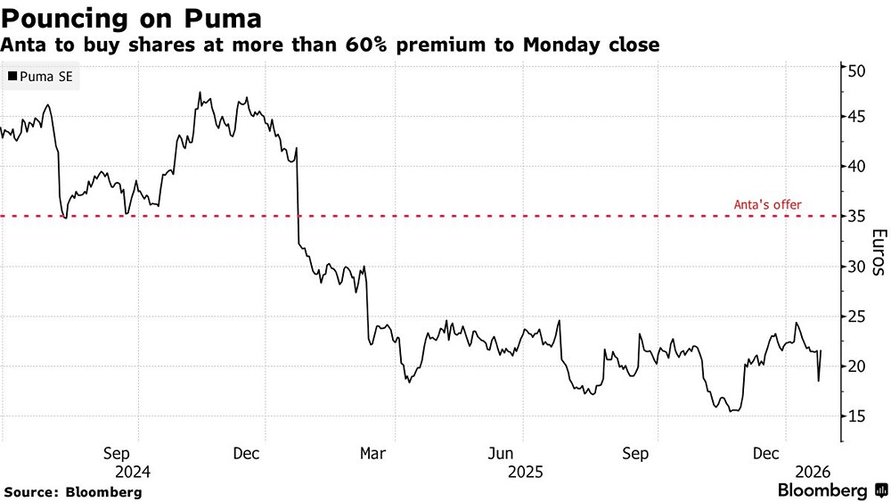 Pinaults продала долю в Puma китайскому гиганту Anta за 1,8 миллиарда долларов Французская семья миллиардеров Пино продала свою 29-процентную долю в немецкой спортивной компании Puma китайскому конгломерату Anta Sports Products за 1,8 миллиарда долларов. Это решение позволит семье сосредоточиться на укреплении бренда Gucci. Anta инвестирует 1,5 миллиарда евро в расширение своего портфеля западных спортивных брендов, куда уже входят Salomon и Wilson. После новости акции Puma выросли на 21%, но затем частично скорректировались. На 10:20 утра они все еще были выше на 7%. Согласно соглашению, Anta приобретет у Artémis, материнской компании Pinault, около 43 миллионов акций Puma по 35 евро за штуку. Это на 62% выше рыночной цены закрытия. Пост взят с международного сервиса для инвесторов и трейдеров [M O N D I A R A](https://i.mondiara.com/) 👉 вот ссылка на канал: https://i.mondiara.com/i/c/china_stocks Скачать приложение в [App Store](https://apps.apple.com/ru/app/m-o-n-d-i-a-r-a/id6475953453) Скачать приложение в [Google Play](https://play.google.com/store/apps/details?id=com.mondiara.app) Валюта расчёта - Ваши добрые мысли! Спасибо, что с нами! [M O N D I A R A](https://i.mondiara.com/) — ключевой инструмент для исследований, торговли, инвестирования и стратегического планирования на российском фондовом рынке Источник: www.bloomberg.com