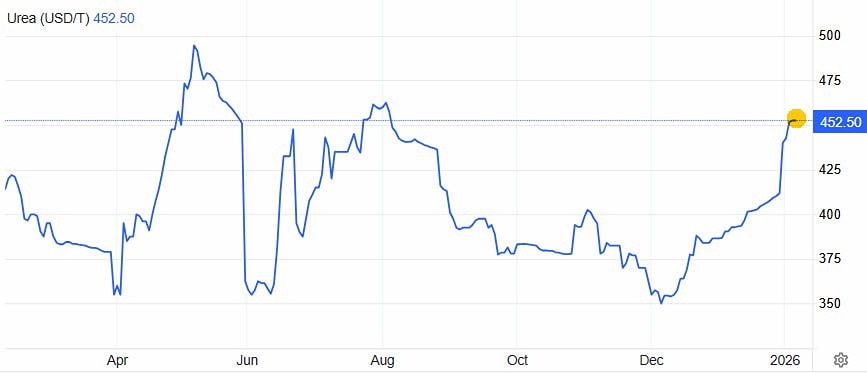 Цены на карбамид активно растут с начала декабря 2025г и уже выросли до максимума с августа прошлого года
