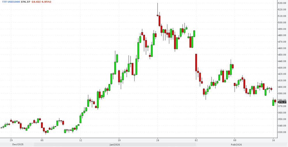 Биржевые цены на газ в Европе продолжают снижение, вплотную приблизившись к отметке в $370 за тысячу кубов, на фоне обеспокоенности Газпрома уровнем закачки европейских ПХГ