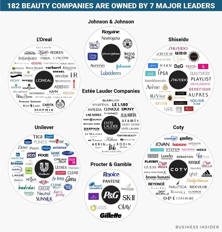 182 косметические компании принадлежат 7 крупнейшим лидерам рынка