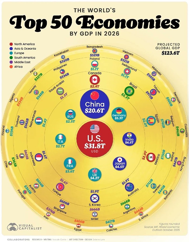 50 крупнейших экономик мира по ВВП в 2026 году Пост взят с международного сервиса для инвесторов и трейдеров [M O N D I A R A](https://i.mondiara.com/)