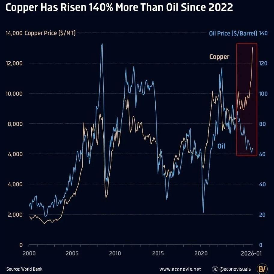 Кстати, обратите внимание на то, что нефть исторически движется в тесной связке с медью, но сейчас заметно отстает. ❗️Низкая цена во многом поддерживается искусственно, поскольку дешевая нефть помогает сдерживать инфляцию и поддерживать финансовую стабильность. При этом инвестиции в новую добычу остаются слабыми, циклы запуска проектов длинные, а спрос сохраняется. Это создает фундамент для роста и постепенной нормализации цены нефти относительно других сырьевых активов в ближайшие годы. Поэтому, если и покупать российские акции, то только НА РАСТУЩЕЙ НЕФТИ. Смысл сейчас брать на себя риски? Не является индивидуальной инвестиционной рекомендацией Пост взят с международного сервиса для инвесторов и трейдеров [M O N D I A R A](https://mondiara.com) Источник: Биржевик | Акции