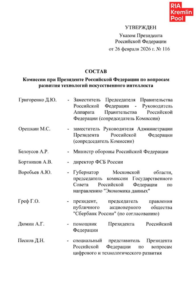Все здесь: Путин создал комиссию при президенте РФ по вопросам развития технологий ИИ