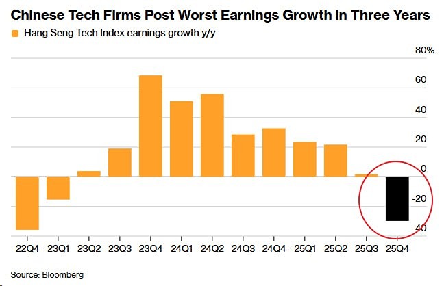⚠️ Китайские техи совсем растеряли весь темп роста прибыли за год.
