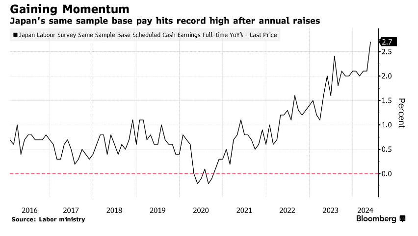 В Японии с 1993 года базовая заработная плата увеличилась в наибольшей степени, что можно считать благоприятным сигналом для Центрального банка Японии.