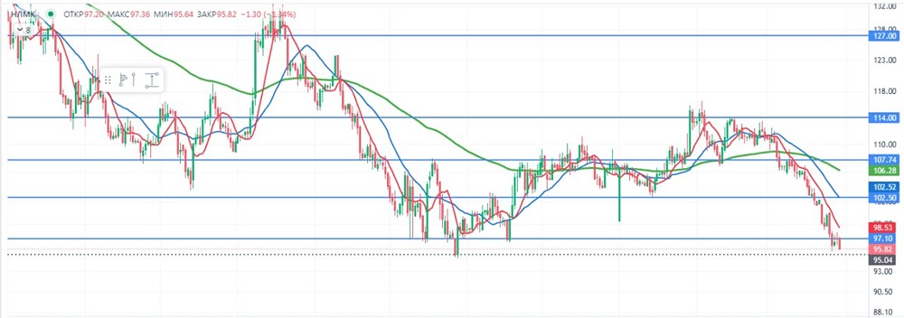 Акция: НЛМК Тикер: NLMK ⭕ Положительные моменты • Полный контроль над производственной цепочкой: от добычи сырья до выпуска готовой продукции. • Отрицательный чистый долг. • Внедрение экологически чистых технологий и снижение углеродного следа. • Снижение капитальных затрат. • Инвестиции в модернизацию и зеленые технологии. ⭕ Негативные аспекты • Риски, связанные с санкциями. • Экологические угрозы. • Зависимость от цен на сырье (железная руда, уголь). • Снижение потребления стали в России. • Высокая конкуренция и цикличность металлургического рынка. • Давление со стороны конкурентов, таких как ММК и «Северсталь». • Операционные риски, включая износ оборудования и логистические проблемы. ⭕ Дополнительные факторы • Выручка: 831 351 руб. (снижение по сравнению с 979 593 руб. в 2024 году). • Валовая прибыль: 239 892 руб. (снижение по сравнению с 384 344 руб. в 2024 году). • Операционная прибыль до долей в СП: 75 389 руб. (резкое снижение по сравнению с 206 222 руб. в 2024 году). • Прибыль до налога: 84 918 руб. (снижение по сравнению с 173 989 руб. в 2024 году). • Чистая прибыль: 63 149 руб. (снижение по сравнению с 121 857 руб. в 2024 году). • Прибыль на акцию: 10,5294 руб. (снижение по сравнению с 20,3194 руб. в 2024 году). ⭕ Дивиденды • Согласно дивидендной политике НЛМК, компания выплачивает дивиденды ежеквартально. Размер выплат зависит от соотношения «Чистый долг / EBITDA»: 1) Если это соотношение меньше или равно 1,0, компания планирует выплачивать 100% свободного денежного потока. 2) Если соотношение выше 1,0, дивиденды составляют 50% от свободного денежного потока. Для расчета свободного денежного потока НЛМК использует нормализованный показатель инвестиций в размере 700 млн долларов в год. Если фактические инвестиции будут выше, то дивиденды могут быть скорректированы. На данный момент выплаты под вопросом. • DSI = 0.00 ⭕ Технический анализ Таймфрейм 1 день: - Тренд: нисходящий. - Индикаторы: указывают на сильный нисходящий тренд. Стохастик в зоне перепроданности. ADX подтверждает тренд. 5 марта цена пересекла 100 ЕМА сверху вниз, подтверждая нисходящую динамику. - Условия: если цена закроется выше 102.52 руб., возможен разворот в сторону роста. Таймфрейм 4 часа: - Тренд: нисходящий. - Индикаторы: указывают на сильный нисходящий тренд. Стохастик выше средней линии. ADX подтверждает тренд. 4 марта цена пересекла 100 ЕМА сверху вниз. - Условия: если цена закроется выше 96.79 руб., возможен разворот в сторону роста. ⭕ Возможные сценарии (4Н) Сценарий №1: При закрытии ниже 95.0 руб. 📍Теоретическая цель 1: нет уровней для оценки. Сценарий №2: При смене тренда. 📍Теоретическая цель 1: 100.7 руб. 📍Теоретическая цель 2: 102.5 руб. 📍Теоретическая цель 3: 107.74 руб. Данный материал носит информационный характер и не является индивидуальной инвестиционной рекомендацией или предложением о покупке или продаже указанной ценной бумаги. Также я веду свой блог: Ⓜ️ [в соцсети Mondiara](https://i.mondiara.com/i/r/Anton-Nikitin) 🟡 [на Т-Пульсе](https://www.tbank.ru/invest/social/profile/ua1cec_invest?author=profile) 🔵 [в Telegram](https://t.me/ua1cec_trading) Подписывайтесь на меня, ваша поддержка дороже [золота](https://i.mondiara.com/i/r/Anton-Nikitin)