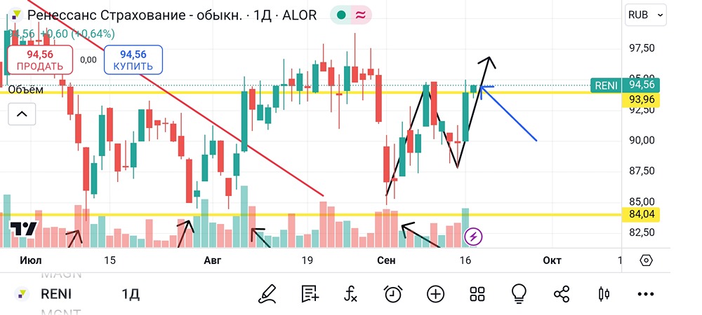 🐹Ренессанс. #RENI 🥜И вот теперь слежу на ним! Пока смотрится сильно на поиске баланса во многих бумагах! От хая не откатывает, это хорошо! 🥜Но всё же что сегодня, а возможно уже завтра надо смотреть не будет ли затухания в движение! Так что по мере возможности держу руку на пульсе! 🐹Не является индивидуальной инвестиционной рекомендацией.