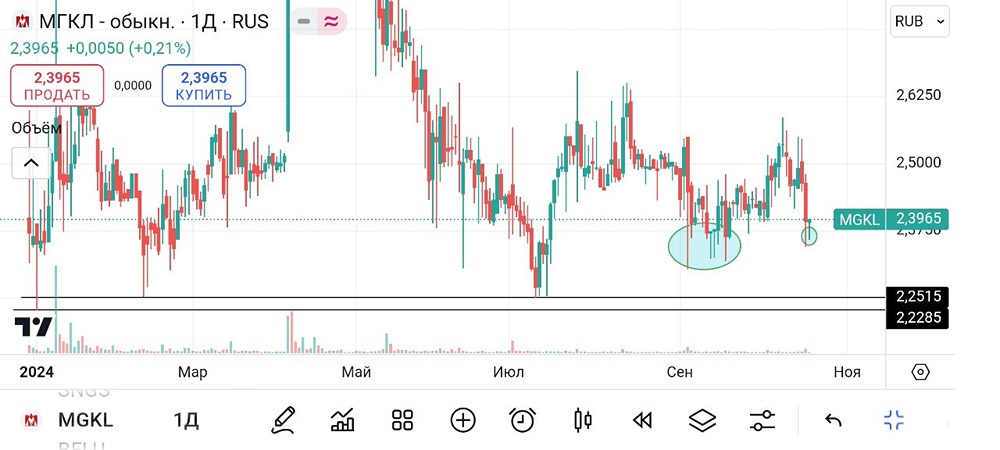 🐹МГКЛ. #MGKL 🥜Интересно в моменте спекулятивно смотрится бумажка. Начали образовываться хвосты. Это хороший знак, ниже бумагу откупают и напрашивается возможность получить спекулятивно 2,5-5%. 🥜Так же тут можно реализовать вилочку! Не резать лося при отмене идеи, а добрать на сильной поддержке ниже! Или же вообще держать бумагу на карандаше под покупку на поддержке! 🥜Понимаю почему компанию не воспринимают в серьёз, какой то ломбард сложно воспринимать всерьёз! Но отчёты компания выдаёт приличные, так что возможно мнение торговцев вполне может изменится! 🐹Не является индивидуальной инвестиционной рекомендацией.
