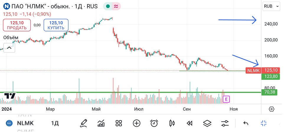 🐹НЛМК. #NLMK 🥜После отчёта ММК, металлургов начали всех лить, перенося её проблемы автоматом на собратьев. У меня есть позиция в НЛМК на первом закупе и на этой волне снижения я держал её на карандаше для добора! После отчёта ММК принял решение дождаться отчёта Северстали, да и снижение не давало повода для добора! 🥜Северсталь отчиталась лучше ММК, не хорошо, но более менее нормально. По этой причине добор в НЛМК остался актуальным. 🥜Сейчас бумага ведёт борьбу за донышко! Торопиться не надо, просто наблюдаю! 🥜От квартальных дивов компания отказалась и считаю, что на таком рынке и в такой ситуации это преимущество! Сами видите, что квартальные дивы не способны разжечь желание покупать туже Северсталь! 🥜А вот див за год будет будоражить умы торговцев! Див за прошлый год был 25р. А цена? А сейчас? И вот интрига, сколько будет за 24г.? По сути если меньше, например 20р., тоже неплохо! А если столько же или больше? Да и не ясно куда ещё может сходить бумага! 🥜По любому размер дива будет будоражить умы торговцев! По этому считаю, что придёт время и она даст волну роста на ожиданиях! А если ожидания не подведут, так вновь и закинут куда-нибудь на 200+ в итоге! ❗️Не является индивидуальной инвестиционной рекомендацией. ________________________ 🐹Хомяк в Телеграм: https://t.me/+Kgh36Hk6zQ4yN2Ni 🐹Сканер волатильности Хомяка: https://t.me/HunterMoexBot?start=khomyak